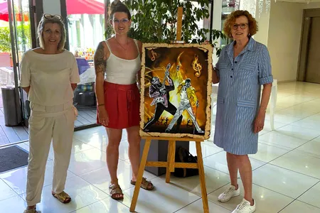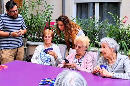 Comme Emie, la petite fille de Robert & Henriette qui est venue jouer au CrackList avec eux, dans le patio de la résidence durant une après-midi. Un moment ludique en famille, entre résidents, animé par Bertrand où les rires et la complicité ont largement remporté la partie. Comme quoi, il n’y a pas d’âge pour s’amuser et se lancer des défis. Des instants partagés précieux qui renforcent les liens entre générations et laissent des souvenirs à tous. Une belle illustration de la philosophie Villavie : une résidence vivante, ouverte aux familles et riche de rencontres, confortablement installés au patio ! ![]() Les artistes Vichyssois s’exposent à la résidence